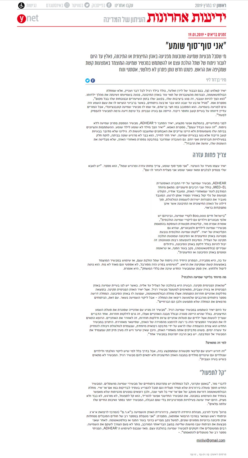 פורסם בזמנים מודרניים "ידיעות אחרונות" 19.01.19