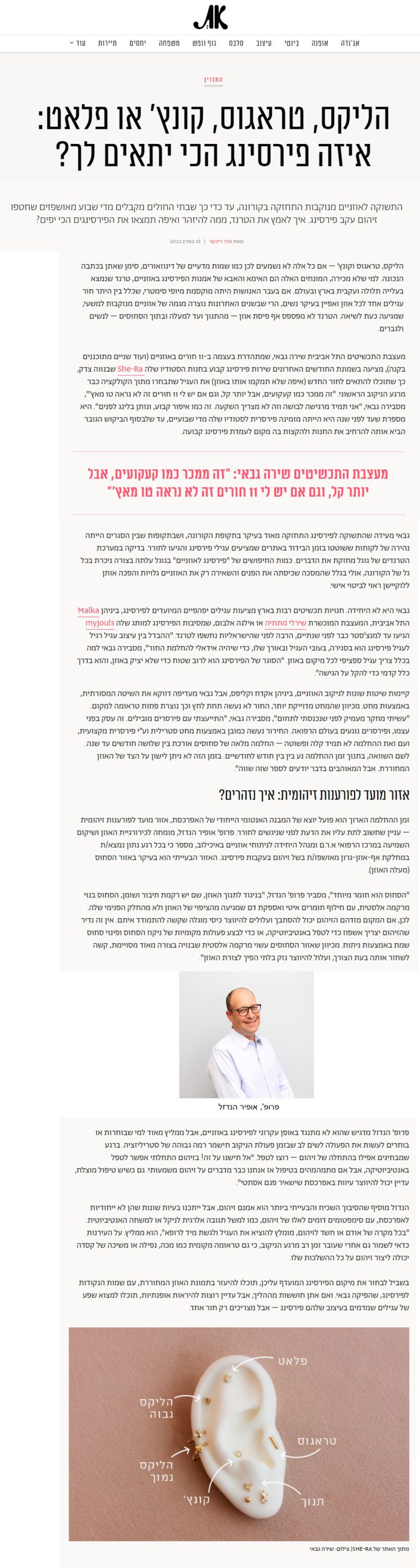 הליקס, טראגוס, קונץ' או פלאט: איזה פירסינג הכי יתאים לך?