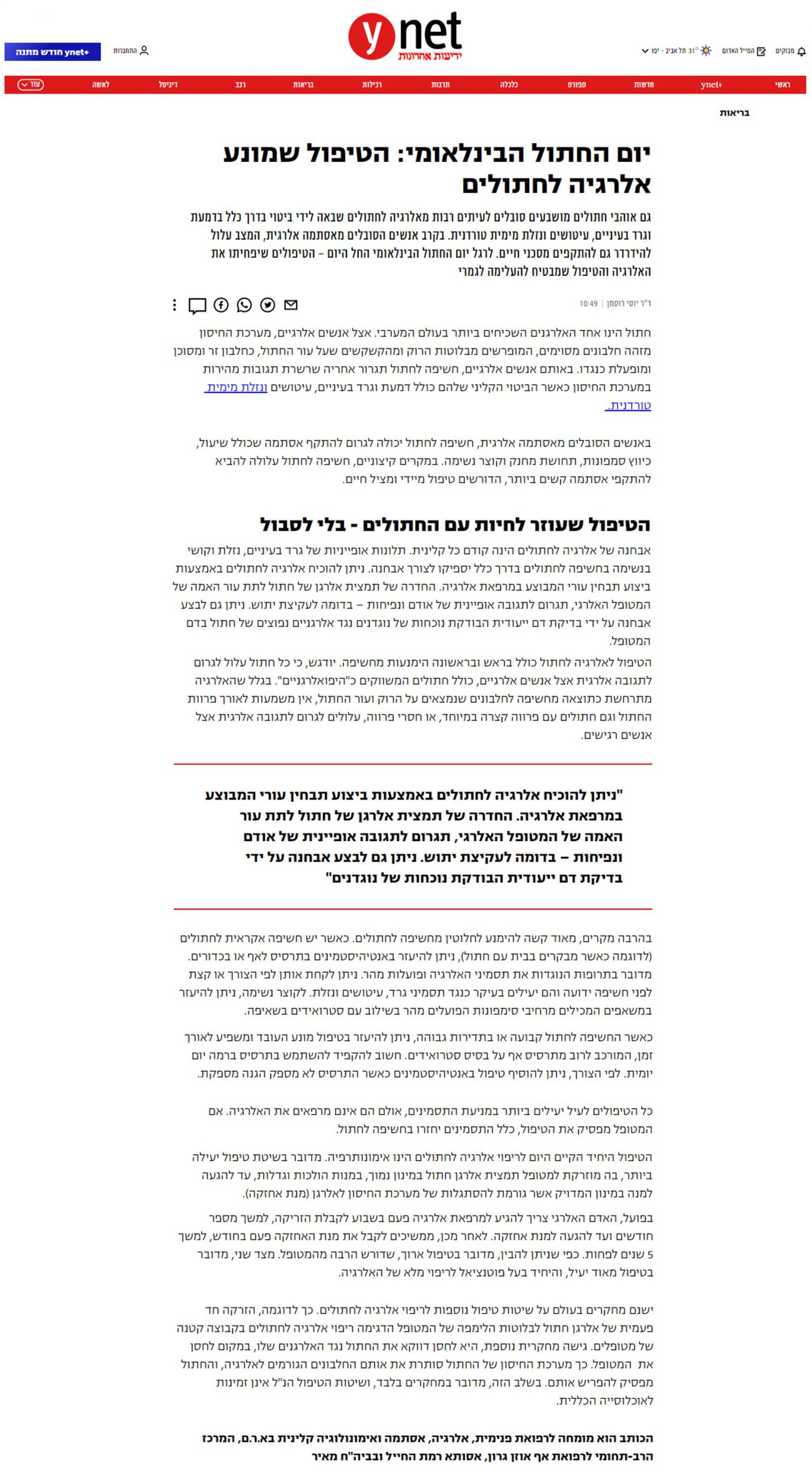 פורסם באתר YNET, מדור בריאות, בתאריך 08.08.2021