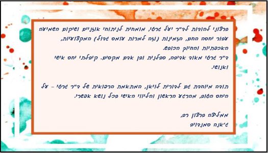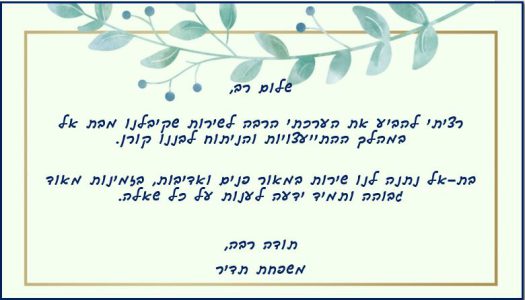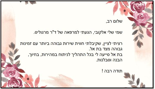 תודה לך בת-אל – על שירות במאור פנים ואדיבות נפלאה!