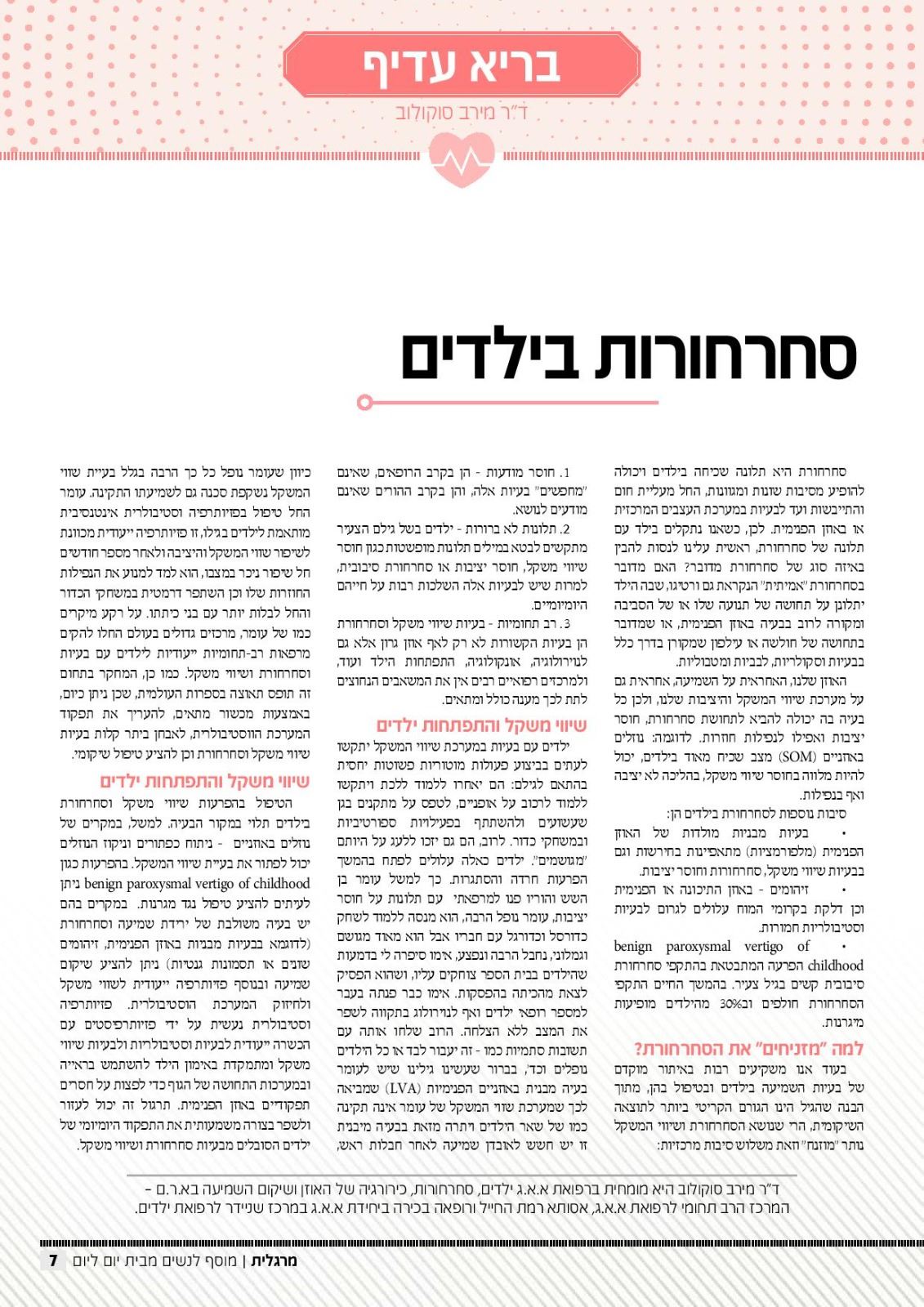 התפרסום בעיתון 'יום ליום', במוסף מרגלית, בתאריך 11.10.2021