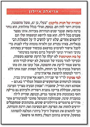 פורסם בעיתון ידיעות אחרונות, מוסף 'זמנים +', מדור 'העיקר הבריאות', בטור של אריאלה איילון, בתאריך 27.04.2023
