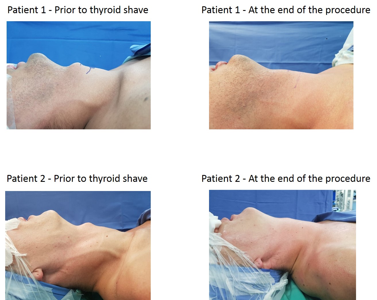 Recently Dr. Hefetz started using the trans-vestibular trans-oral approach. This approach was described recently for scar-less thyroid and parathyroid surgery by Rakph Tufano from Johns Hopkins university and for the last year Dr Hefetz performed over 50 trans-oral thyroidectomy and parathyroidectomy using this unique approach. Lately Dr Hefetz thought that we may be able to reduce the thyroid cartilage and flatten a pronounced ADAM’s apple through this scar=less approach. A cartilage shaver was designed specifically for that procedure and was examined on cadavers. Following institutional approval four trans-gender woman underwent the surgical procedure.