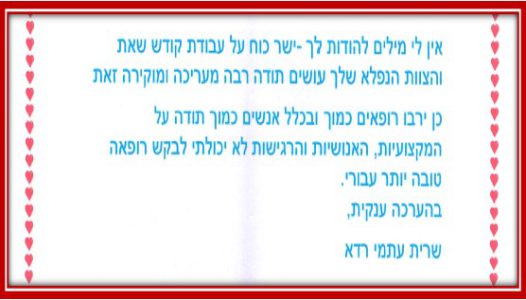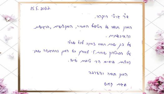 ד"ר גרטי ודורית היקרות – תודה על היחס האנושי והאישי והטיפול המקצועי והמסור!