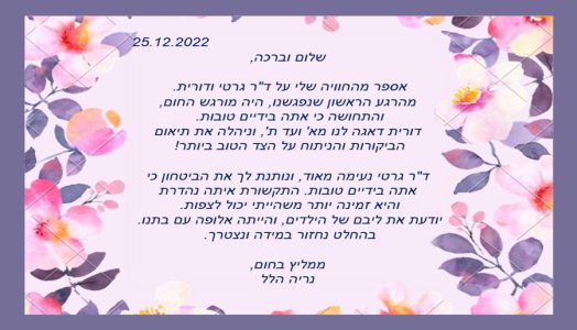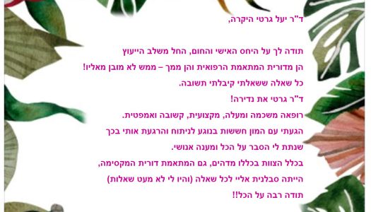 ד"ר יעל גרטי גרוס ודורית – תודה על המקצועיות והרגישות – ממש לא מובן מאליו!