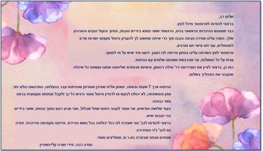 פרופ' חפץ ואסף – תודה על הטיפול המסור והשירות המצויין!