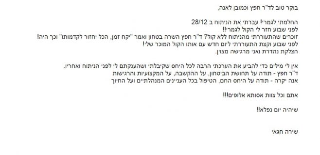 חזרה לפניה (בימי חול) תוך 24 שעות