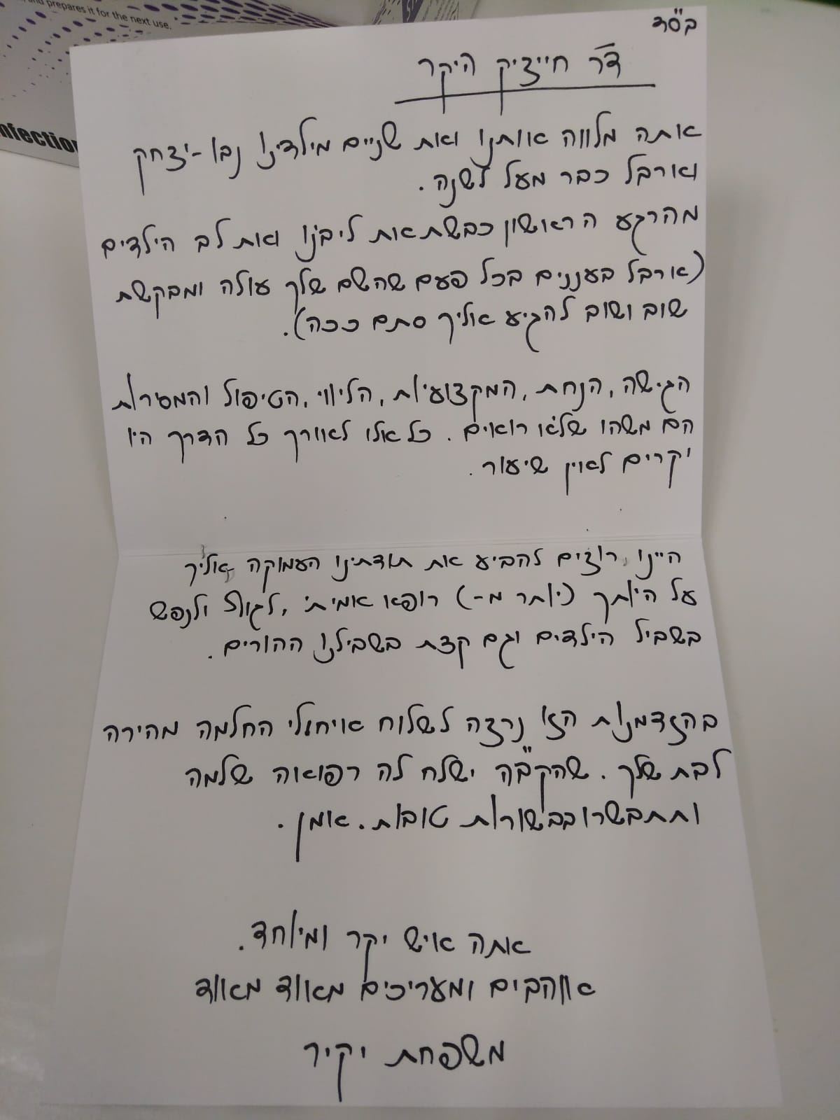 חזרה לפניה (בימי חול) תוך 24 שעות