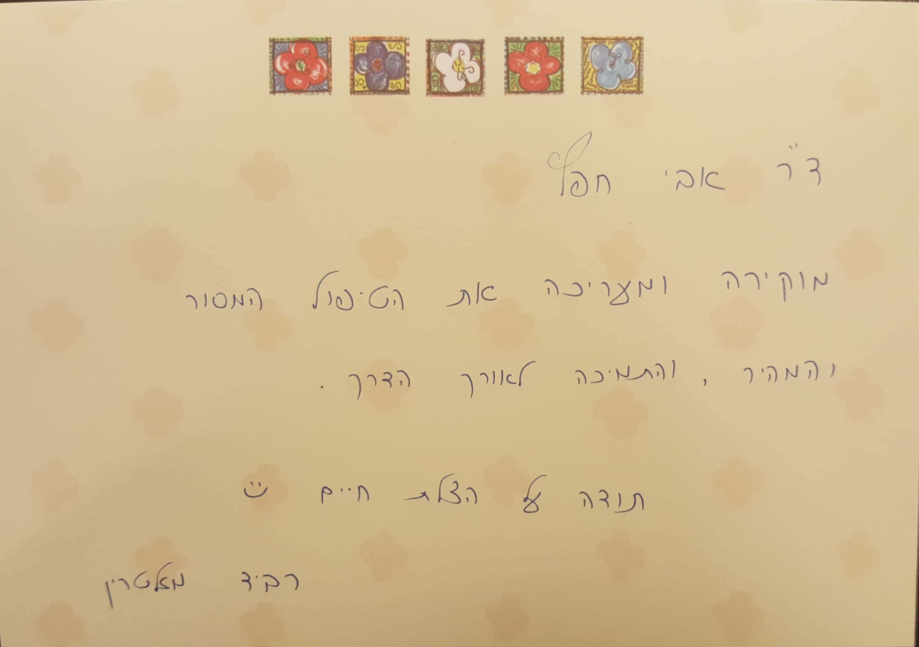 דף הבית | לד"ר אבי חפץ, מוקירה ומעריכה את הטיפול המסור…