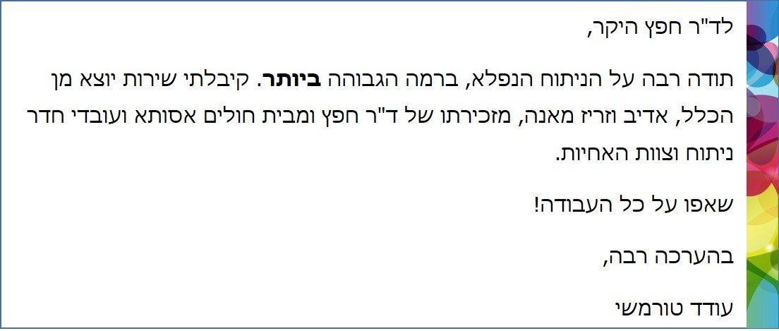 דף הבית | לד"ר חפץ היקר, תודה רבה על הניתוח הנפלא ולאנה על השירות…