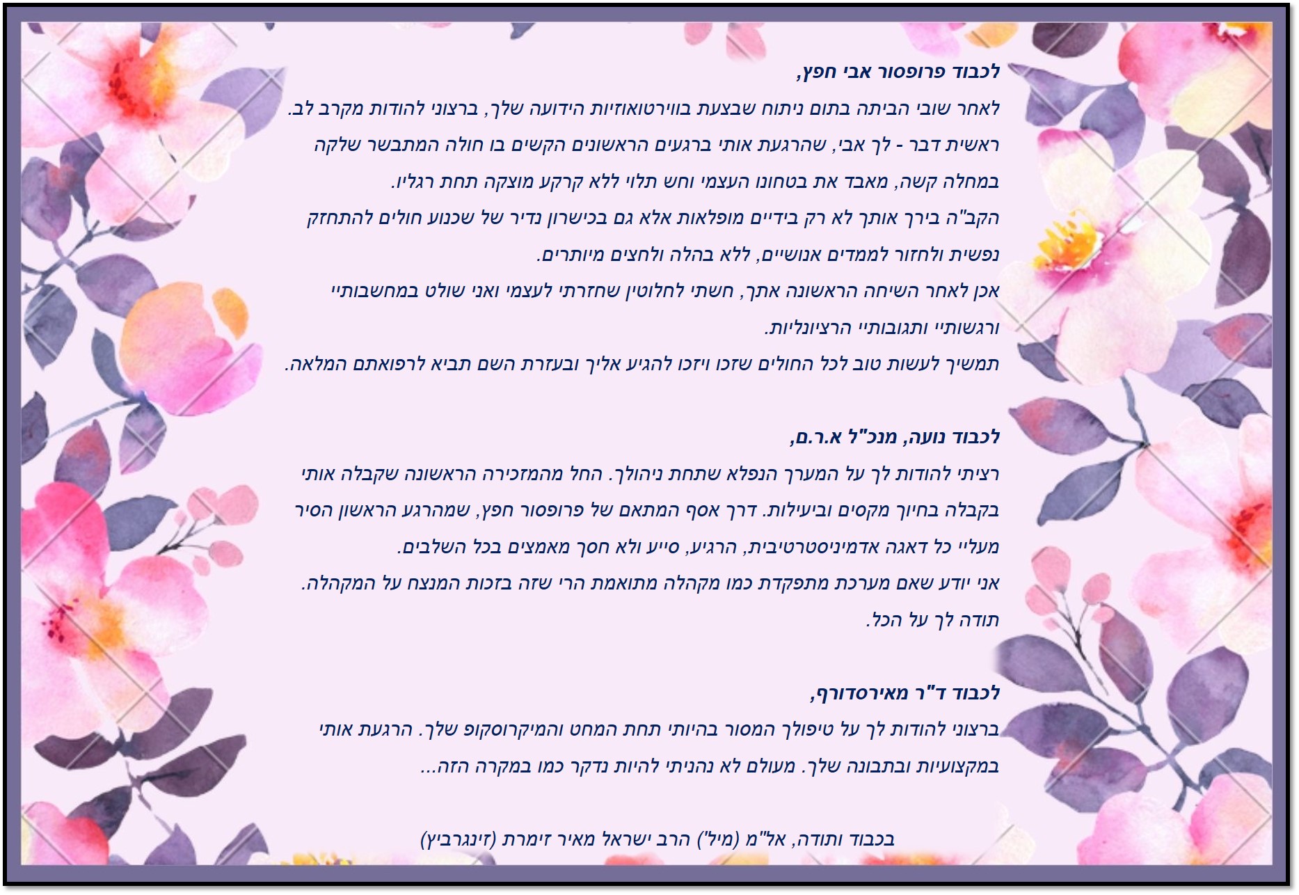 דף הבית | פרופ' חפץ היקר – תודה רבה לך ולכל צוות א.ר.ם