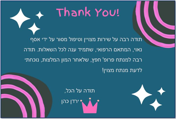 דף הבית | פרופ' חפץ ואסף נאוי היקרים – תודה על הטיפול המסור והשירות המצויין!