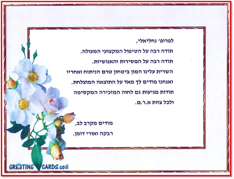 דף הבית | פרופ' נחליאלי וחוה היקרים – תודה רבה על הטיפול המקצועי, המסירות והאנושיות!